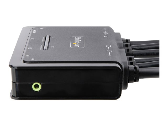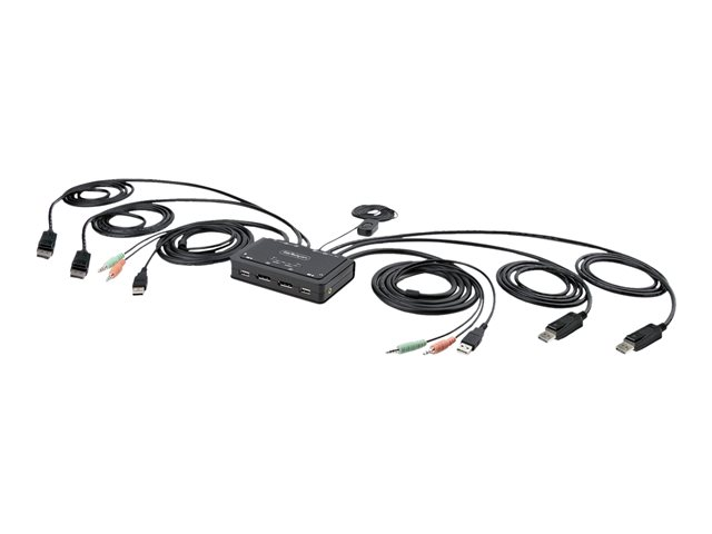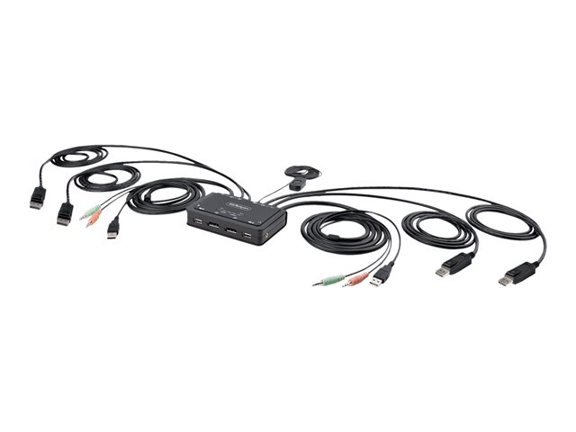 StarTech.com 2-Port Dual-Monitor DisplayPort Cable KVM Switch, 4K 60Hz, Compact KVM with 5ft/1.5m USB-A/DisplayPort/Audio Integrated Cables, Bus Powered - Remote Push Button/Hotkey Switching (C2-DD46-UA2-CBL-KVM) - KVM / lyd / USB-svitsj - kompakt - 2 x KVM/lyd/USB - 1 lokalbruker - stasjonær