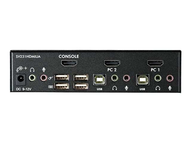 Share a keyboard, mouse and HDMI monitor between 2 multimedia computers. The SV231HDMIUA 2-port USB HDMI KVM Switch lets you control two USB-enabled multimedia computers or devices with HDMI video interfaces, using a single peripheral set/console (USB keyboard, mouse, monitor, speakers and microphone).