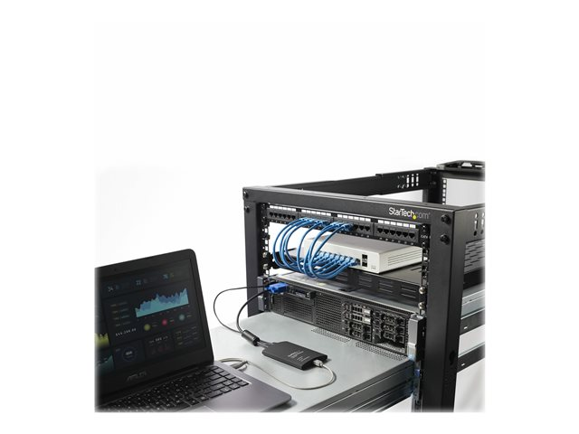 With portability for the mobile administrator or repair technician in mind, this USB-powered adapter features a small-footprint design that requires no additional accessories to connect to most servers, and requires no server-side software installation. Plus, the pocket-sized adapter draws its power from the server-side USB connections, allowing the laptop/netbook to last longer without consuming battery power.