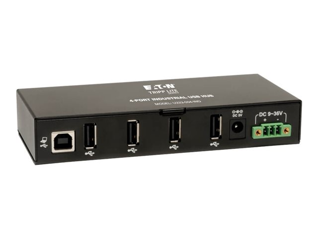 Eaton Tripp Lite series 4-Port Rugged Industrial USB 2.0 Hi-Speed Hub w 15KV ESD Immunity Metal Mountable - Hub - 4 x USB 2.0 - DIN-skinnemonterbar, veggmonterbar