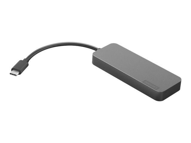 Expand your device's connectivity with the Lenovo USB-C to 4 Port USB-A Hub. This compact and durable hub transforms a single USB-C port into four USB 3.0 ports, allowing you to connect a variety of devices simultaneously. Whether you're at home or in the office, this hub ensures you can attach multiple peripherals, from keyboards and mice to external storage and more, without sacrificing performance. Its high-speed data transfer capability makes it ideal for multitasking and handling data-intensive applications. Designed to operate in a wide range of environmental conditions, and compliant with several international standards, the Lenovo USB-C to 4 Port USB-A Hub is the perfect solution for expanding your connectivity options.