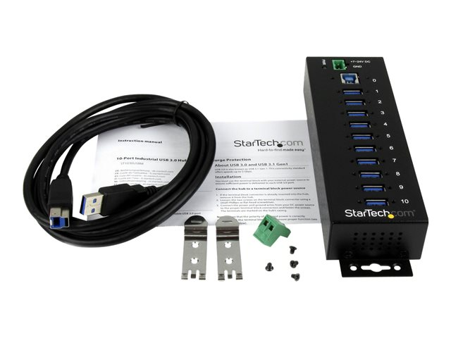 This TAA compliant 10-port industrial USB 3.0 hub gives you the scalability you need in harsh industrial environments, product and repair labs, conference rooms or office workstations. With its rugged industrial grade metal housing, it is designed to meet the advanced requirements of connecting a high number of devices in factories and office environments.