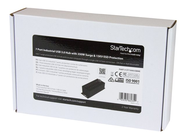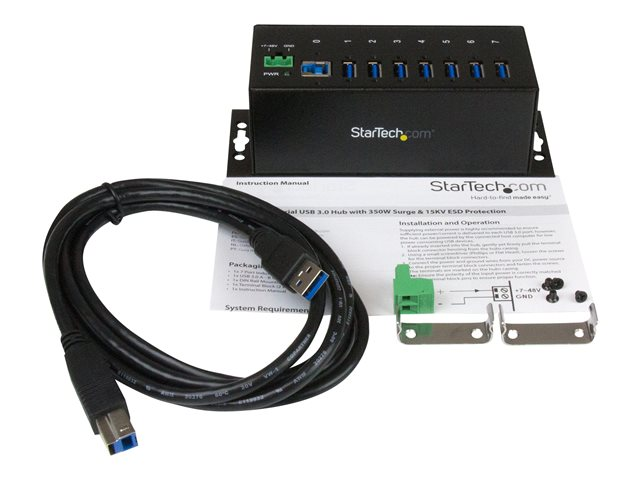 StarTech.com 7-Port USB 3.0 Hub - Metal Industrial USB-A Hub with ESD Protection & 350W Surge Protection - Din Rail, Wall or Desk Mountable - TAA Compliant USB Expander Hub (ST7300USBME) - Hub - 7 x SuperSpeed USB 3.0 - DIN-skinnemonterbar, veggmonterbar - DC-strøm - for P/N: ITB20D3250, USB312SAT3CB, USB315CB2M, USBLT1MWS, USBLT2MBR, USBLTM1MBK, USBLTM1MWH ST7300USBME