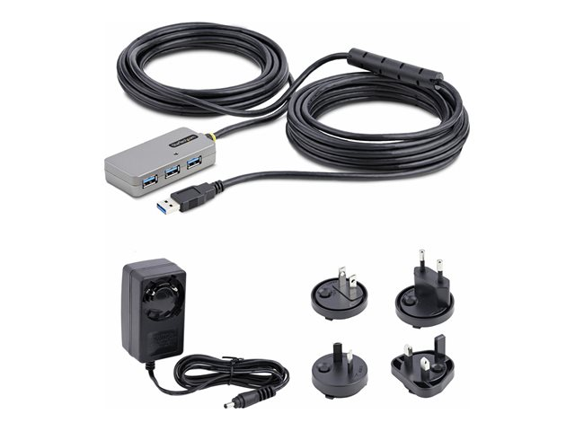 StarTech.com USB Extender Hub, 10m USB 3.0 Extension Cable with 4-Port USB Hub, Active/Bus Powered USB Repeater Cable, Optional 20W Power Supply Included - USB-A Hub w/ ESD Protection (U01043-USB-EXTENDER) - Hub - 4 x USB 3.2 Gen 1 - stasjonær