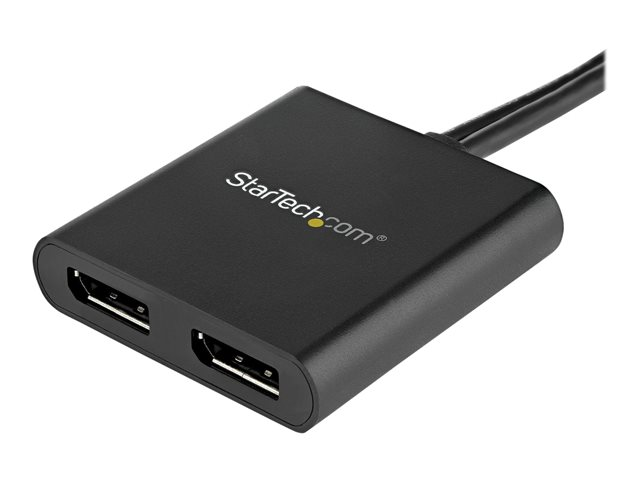 This MST hub lets you connect two monitors to your DisplayPort (DP) 1.2 equipped Windows laptop or desktop. It's USB powered, so the only thing you'll need to operate the hub is your computer.