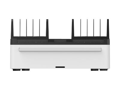 - Chargers are stored within the base of the charging station, keeping the area tidy