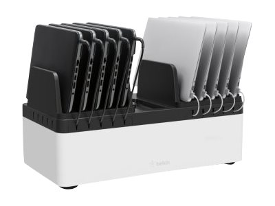 Store and Charge Go with fixed dividers is the ideal solution to store and charge multiple devices safely and conveniently. A base unit stores up to 10 devices and can be attached securely to a desktop or wall to save space. Charge up to 10 USB charging compatible devices at the same time while housing charging cables neatly within the base unit. Universal compatibility means the Store and Charge Go offers solutions for Chromebook computers, laptops, tablets, and more.