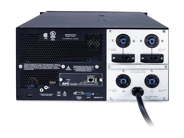 APC Smart-UPS - UPS (kan monteres i rack) - AC 208 V - 4 kW - 5000 VA - enkeltfase - Ethernet 10/100, RS-232 - utgangskontakter: 4 - 5U - svart SUA5000RMT5U