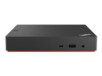 Lenovo ThinkPad Universal USB-C Smart Dock - ThinkSmart Edition er utformet for allsidige tilkoblingsmuligheter og strømlinjeformet produktivitet. Med en rekke porter, inkludert USB 3.2 Gen 2, HDMI og DisplayPort, har denne dokkingstasjonen plass til ulike enheter og periferiutstyr, slik at brukerne kan utvide arbeidsområdet sitt. Dokkingstasjonen har støtte for to skjermer, noe som er ideelt for profesjonelle multitaskere som trenger forbedrede visuelle opplevelser på flere skjermer. Denne dokkingstasjonen er konstruert med en 2 m ekstern USB-C til USB-C-kabel, noe som sikrer pålitelige tilkoblinger. Den har viktige grensesnitt som Ethernet og lyd, og tilbyr opptil 135 watt strøm via strømadapteren for å lade kompatible enheter. I tillegg sørger funksjoner som Kensington-sikkerhetsspor og to separate låser for at både dokkingstasjonen og tilkoblede enheter forblir sikre, noe som gir brukerne økt trygghet.
