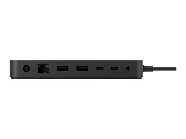 Microsoft Surface Dock fungerer som en allsidig dokkingstasjon som gir sømløs tilkobling og økt produktivitet. Med en integrert formfaktor er den designet for å fungere med Surface-enheten din, og gir en robust strømforsyning og en rekke tilkoblingsmuligheter. Denne enheten er utstyrt med ulike grensesnitt, inkludert lyd- og nettverksporter, som sikrer en omfattende tilkoblingsopplevelse for personlige og profesjonelle behov. Nettverksfunksjonalitet støttes gjennom Ethernet-, Fast Ethernet- og Gigabit Ethernet-protokoller, noe som gir stabil og rask internettilgang. Kensington-sikkerhetssporet forbedrer enhetens sikkerhet ved å muliggjøre fysiske tiltak som beskytter verdifullt utstyr. Surface Dock forenkler arbeidsområdet ditt og forbedrer dine daglige databehov med sin pålitelige og effektive design.
