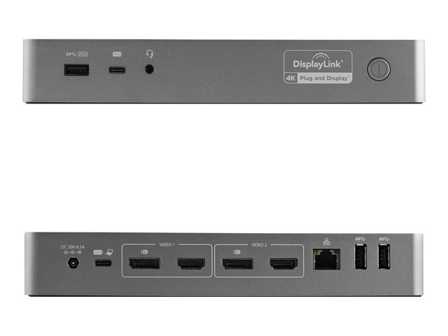 Transition from the legacy USB-A (USB 3.0) to the USB-C with this certified universal laptop docking station for USB-C and USB-A laptops. The USB-C dock features 100 W power delivery 3.0, dual HDMI and/or DisplayPort monitors, fast-charge, and both USB-C and USB-A peripheral ports.