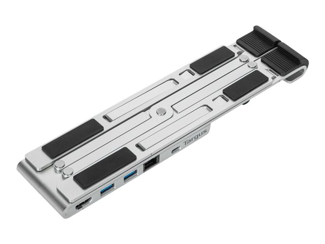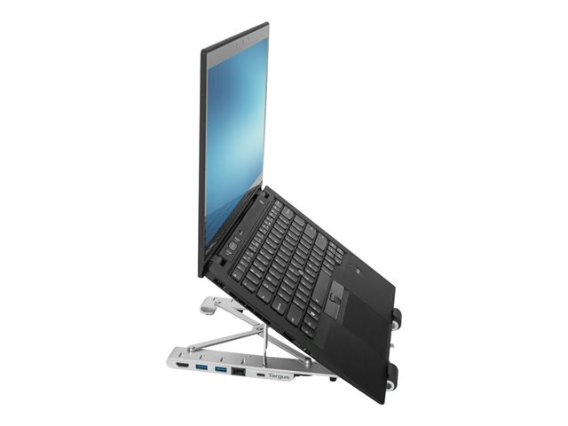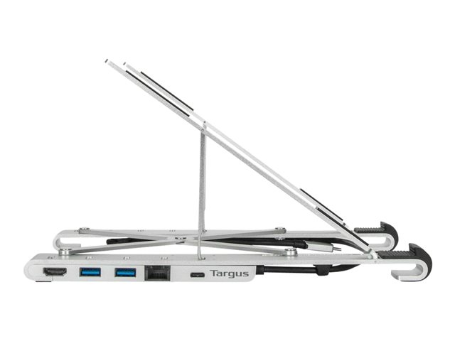 Stylish and durable, this Targus Portable Stand with Integrated Dock is made with aluminum that is designed to be foldable to an ultra-compact size (25.3 x 6 x 1.83 cm), perfectly stowed within a Targus backpack or laptop case of the modern mobile worker who's looking to transform their laptop into a workstation at multiple workspaces.