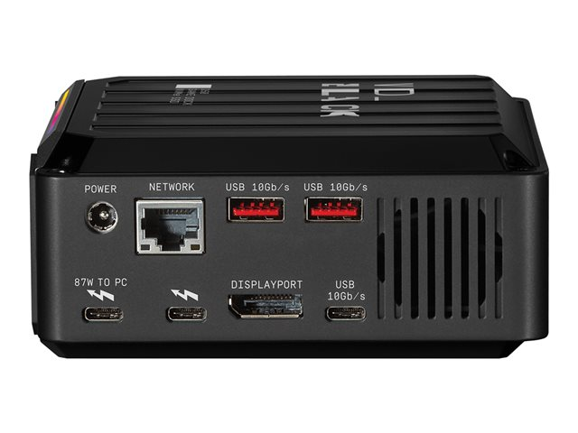 Transform your laptop into a fully integrated gaming station, clearing the clutter through a single Thunderbolt 3 cord with multiple ports to seamlessly connect your peripherals, giving you fast speeds with NVMe technology and more capacity for your games.