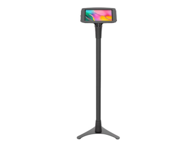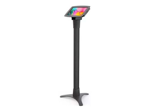 Vårt justerbare stativ kan stilles inn i ulike høyder: 39" - 45" / 100 cm - 115 cm, og stativet gjør det mulig å stille inn nettbrettet i enten stående eller liggende modus. Stativet er designet for maksimal stabilitet med en kraftig stålbase som gir kabelføring gjennom selve stativet. Under kabinettet er det et lite oppbevaringsrom for ladeenheten til nettbrettet.
