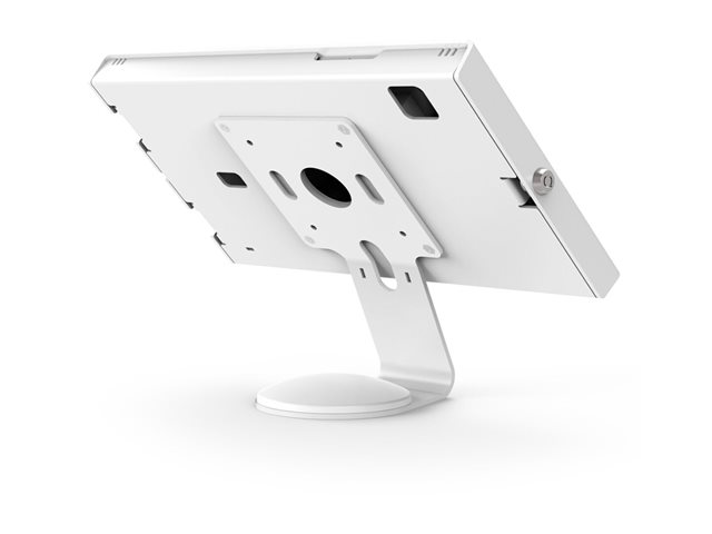 The Galaxy Tab A9+ Apex Enclosure Core Stand by Compulocks is designed to provide support and security for tablets with a recommended display size of 11 inches. This enclosure is crafted for wall mounting, making it suitable for various environments where space-saving is essential. With its lockable feature using a key, it ensures that the device remains secure from unauthorized access. The powder-coated finish enhances the durability of the stand while giving it a sleek and professional appearance that fits well in any setting.
