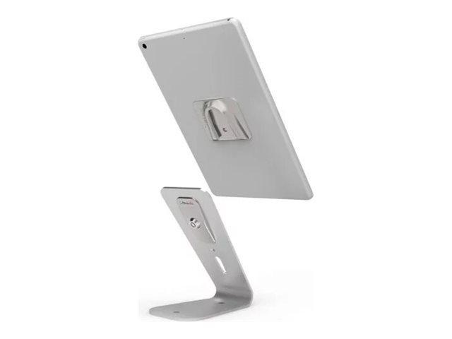 HoverTab Security Stand - Universal Display Lockable stand for any Tablet or Smartphone. The clean looking design Hover Tablet stand is a one of a kind product that can provide you with a simple clean way to securely display your tablet. The HoverTab is a two part system, the first being an adhesive steel plate that connects to the back of the iPad, Galaxy Tab or smartphone. The second is the six inch high stand, sloped at a 60 degree angle for an optimal viewing angle and has 4 inch base for stabilized balance no matter the connected device.