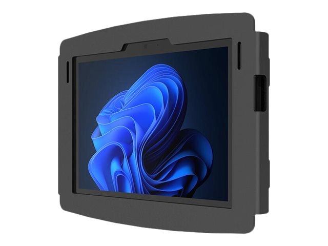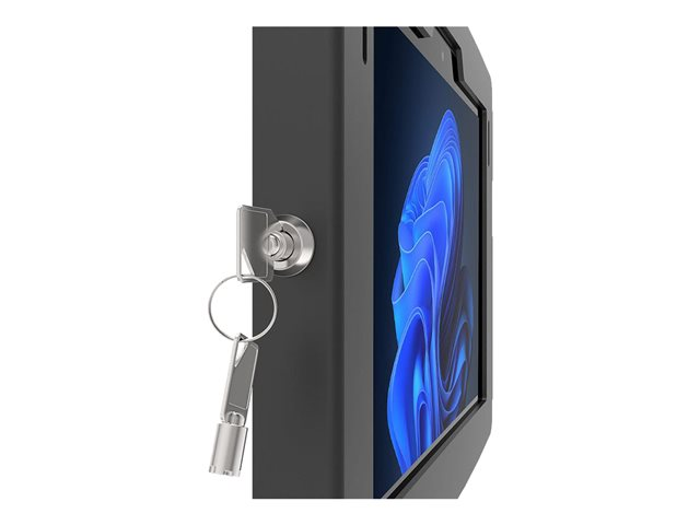 The Space Surface Enclosure features open corners for proper ventilation and access to the audio and charging ports for continuous charging. These features allow for a fully functional device when locked in the Spacet Enclosure. The keyed lock makes it easy to access when tablet maintenance is required.