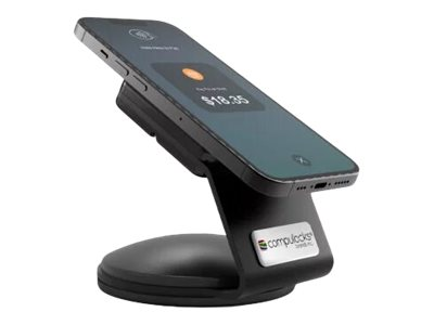 The clean looking SlideDock is a versatile product that can provide you with a simple clean way to securely display your EMV reader or Smartphone POS. The SlideDock is a two-part system, the first being an adhesive plate that connects to the back of the device. The second is an angled swivel stand, with a quick lock base for a secure “Grab & Go” solution. Once the connecting plate has set on the back of the device you slide it on the SlideDock stand. The first measure of security is an integrated keyed cylinder lock that latches the device in to place. The second is securing the stand itself, with adhesive or screw-on base, to the table surface or wall.