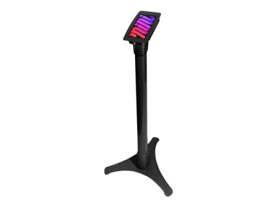 Vårt justerbare stativ kan stilles inn i ulike høyder: 39" - 45" / 100 cm - 115 cm, og stativet gjør det mulig å stille inn nettbrettet i enten stående eller liggende modus. Stativet er designet for maksimal stabilitet med en kraftig stålbase som gir kabelføring gjennom selve stativet. Under kabinettet er det et lite oppbevaringsrom for ladeenheten til nettbrettet.