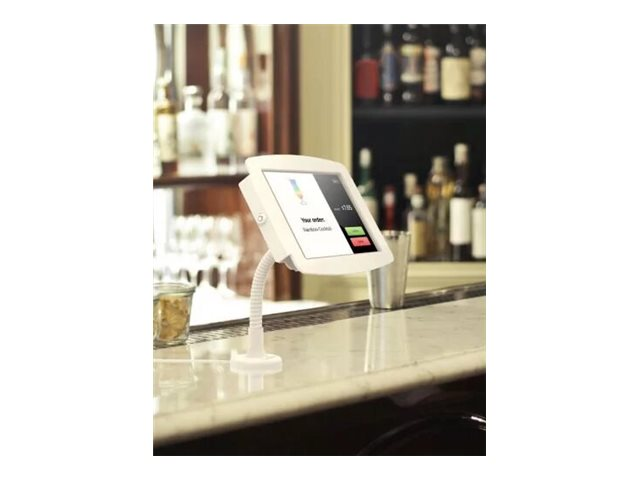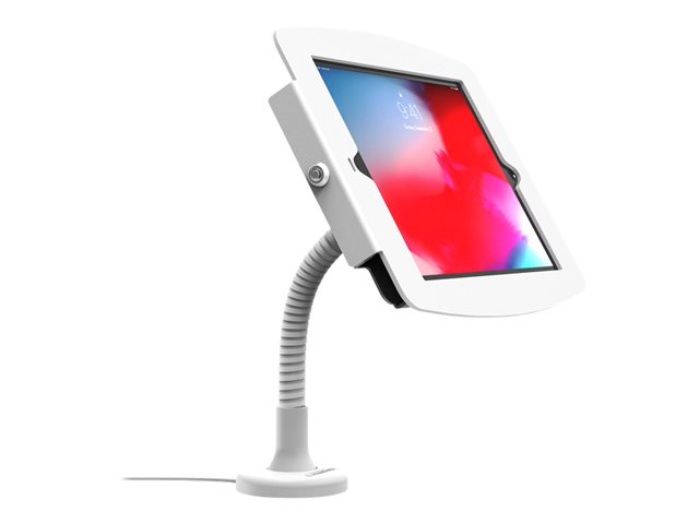 Our Flex Arm stand can be mounted on any flat surface, counter-top or to a wall for use as a secure interactive display or kiosk with a bendable arm that is great for corners and where counter space is limited. Limited cable management is available through the mount and arm of the stand and there is an adhesive no-screw base add-on available.