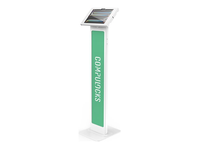 The Compulocks iPad Pro M4 11" Apex Enclosure Brandable Floor Stand offers a versatile solution for tablet mounting. Designed for 11" devices, it features a lockable enclosure that ensures security while providing a branded display option for businesses. This mounting kit supports both portrait and landscape orientations, allowing for flexibility in content presentation. Its sturdy base and adjustable components make it suitable for various environments, including retail spaces, events, and offices.