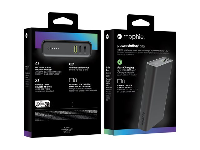 The ZAGG mophie powerstation pro delivers a 20,000 mAh capacity, ensuring power for multiple devices when on the go. It features a sleek and durable design crafted from silicone and anodized aluminum. With the ability to simultaneously charge up to 3 devices, this power bank is ideal for anyone needing to keep multiple gadgets powered throughout the day. Equipped with fast charge technology through Power Delivery, it can provide up to 30 W of power, reducing charging time. The convenient LED indicator allows for easy monitoring of the battery level, while the compact design ensures portability without sacrificing performance. This power bank is an essential accessory for those requiring power solutions wherever they may be.
