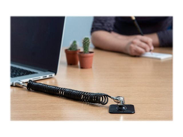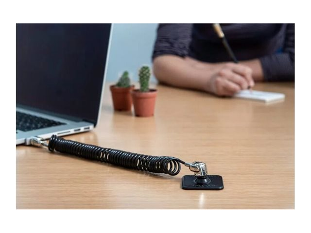 The Compulocks Dual Head Coiled Keyed Cable Lock is a comprehensive security solution designed to protect a wide array of electronic devices. Constructed from durable galvanized steel, it offers reliable protection against theft or tampering. Its coiled cord design not only provides the flexibility needed to secure multiple devices simultaneously but also ensures a tidy, clutter-free workspace. Equipped with a T-Bar locking mechanism, this security cable lock is both easy to use and highly effective in maintaining the safety of your desktop computers, servers, notebooks, and monitors. Whether for personal use or in a professional setting, the Dual Head Coiled Keyed Cable Lock by Compulocks is an essential tool for safeguarding your valuable electronic assets.