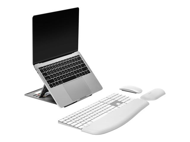 Padded inserts provide non-slip stability for any laptop, keeping it firmly and safely in place while you work. Designed to quickly and easily fold flat so it saves space in your bag when you're traveling on long or short trips.