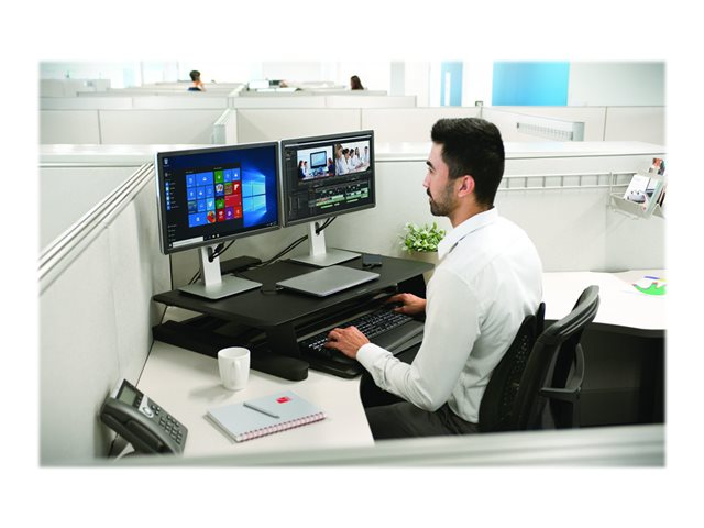 Incorporating Kensington's patented technology to ensure proper fit, the SmartFit Sit/Stand Desk provides an efficient and safe way to convert your desk into a healthy sit-stand workstation using a convenient desk-on-desk design. Strong and stable at any height, while using a pneumatic lift to effortlessly raise and lower your workspace within a space-saving footprint, the Kensington SmartFit Sit/Stand Desk delivers optimal productivity and ergonomic support.