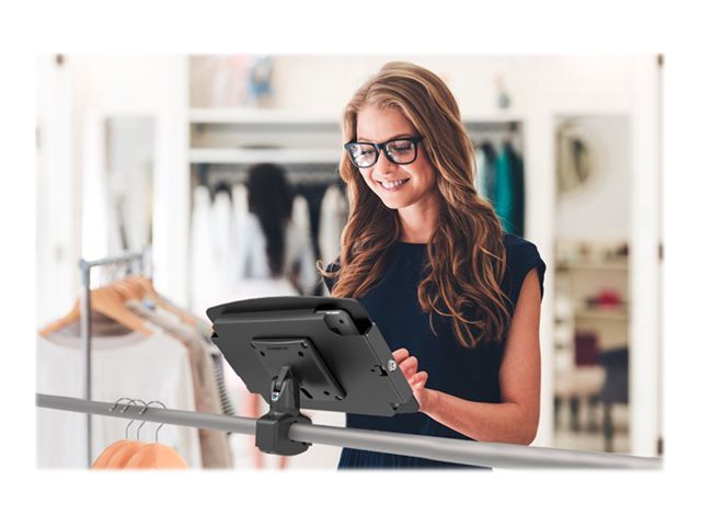 Mount any iPad to any pole or rail. The space iPad enclosure features rounded edges and open corners for improved ventilation and limited access to buttons and inputs. The unique design enables continuous iPad charging and peripheral cables to be plugged in while in the enclosure, and the VESA rail mount provides screen tilt and pan. The space iPad enclosure features rounded edges and open corners for improved ventilation and allows for limited access to buttons and inputs. Tablet can be continuously charged while in the enclosure and have peripheral cables plugged in while mounted.