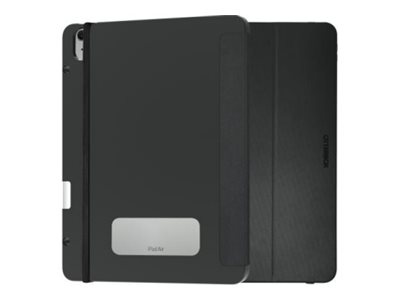 The OtterBox React Series protective cover provides essential drop protection for your tablet. Designed with an ultra-slim profile, this folio offers a sleek and functional solution for everyday use. The cover features a stand function with two stand positions, making it easy to view your device at the optimal angle. The elastic strap closure ensures that the cover remains securely fastened while in transit. With compartments for Apple Pencil storage and raised edges around the screen and camera, this case combines functionality with robust protection to keep your device safe from daily wear and tear.
