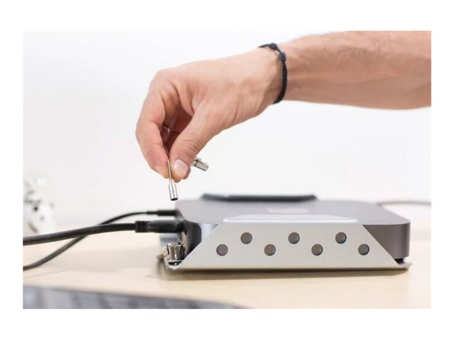 It doesn't get much easier when looking to securely mount your new Mac Mini. The Mac Mini Lock and Mount allows you to fix the security bracket to any flat surface. You can safely screw the mount to a wall, desk, underside of a table, cabinet and even the back of a monitor. Once the bracket is secured all you need to do is slide your Mac Mini into the mount, align the cables with the patented cable trap and connect the lock. The ventilated design protects your device against overheating and wireless signal loss while giving you total access to the power button, USB, HDMI & Ethernet ports to ensure a complete user experience.