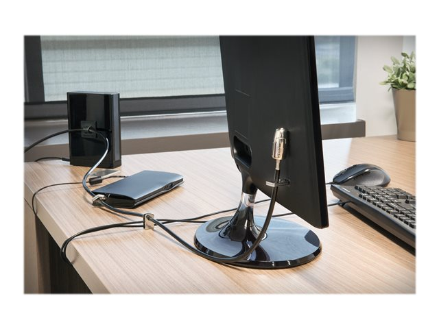• 2.4m (8-foot) carbon steel cable is cut-resistant and anchors to desk, table or any fixed structure