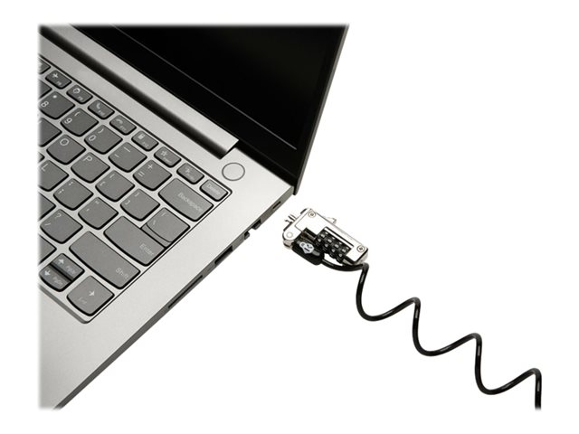 Ideal for thin laptops, the Slim NanoSaver Portable Combination Lock allows the laptop to lie flat and stable, and won't block valuable ports. Self-coiling carbon steel cable sheathed in plastic stretches up to six feet and shrinks down to three inches, for easy portability. Features include a resettable four-number combination; one-handed operation; and Register & Retrieve for quick, secure, and easy combination retrieval. Meets or exceeds rigorous strength testing standards. From Kensington, inventor of the laptop cable lock, and industry leader in physical device security for more than 25 years. Compatible with HP, Lenovo and other Nano Slot compatible ultrathin devices, computers & notebooks.